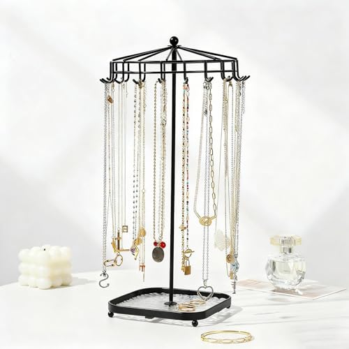 Jewelry Display Stand – Rotatable Display Modern Decor – Metal Jewelry Organizers and Storage | for Necklace Earring Ring Fashion Accessories Women Home Dresser Bedroom Vanity Apartment