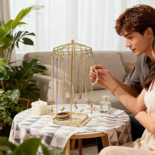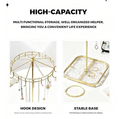 Jewelry Holder | Rotating Metal Modern Decor,Metal Jewelry Organizers and Storage,for Necklace Earring Ring Fashion Accessories Women Home Dresser Bedroom Vanity Apartment