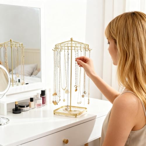 Jewelry Organizer | Rotating Metal Modern Decor – Metal Jewelry Organizers and Storage – for Necklace Earring Ring Fashion Accessories Women Home Dresser Bedroom Vanity Apartment