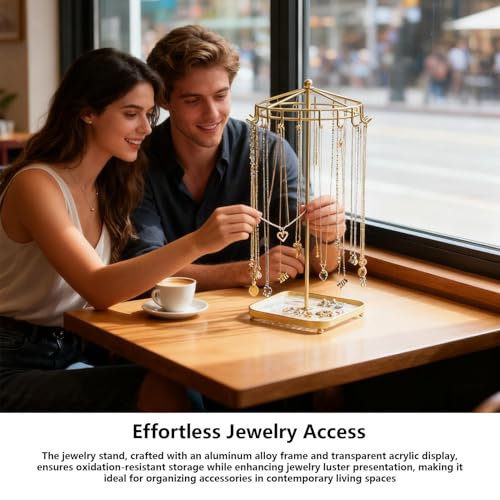 Enhanced Luster Display: The jewelry stand’s aluminum alloy frame paired with transparent acrylic not only prevents oxidation but also highlights the natural glow of your jewelry, seamlessly complementing sophisticated home interiors