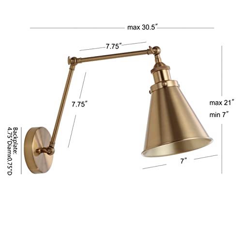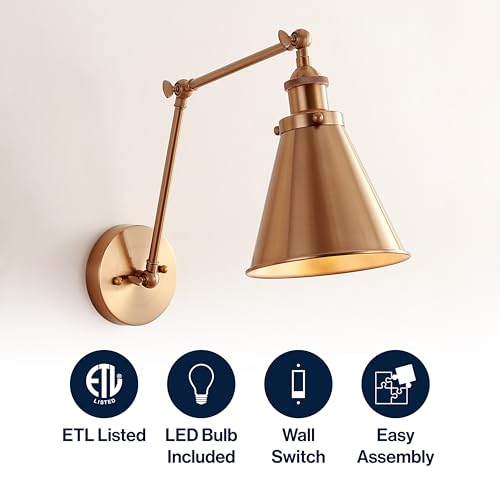 JONATHAN Y JYL7461A Rover 7″ Farmhouse Industrial Adjustable Arm Metal LED Wall Sconce Rustic Bohemian 2700K LED 4W Bulb for Entryway Lobby Kitchen Bathroom Bedroom Living Room Hallway, Brass Gold