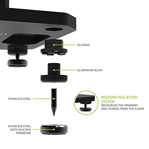 ISOLATING WITH LOW RESONANCE – Bespoke isolation system and hard floor discs with silicone pads help to further isolate the speakers and stands from the floor. A fillable column with included bags for substrate reduces potential resonance.