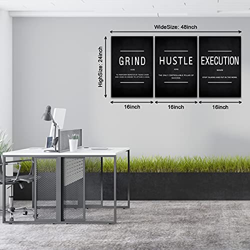 KAWAHONE Grind Hustle Execution Quotes Framed Wall Art, Inspirational Painting Prints Poster Wall Decor Motivation Canvas Entrepreneur Wall Picture for Home Office Business Workplace Ready to Hang