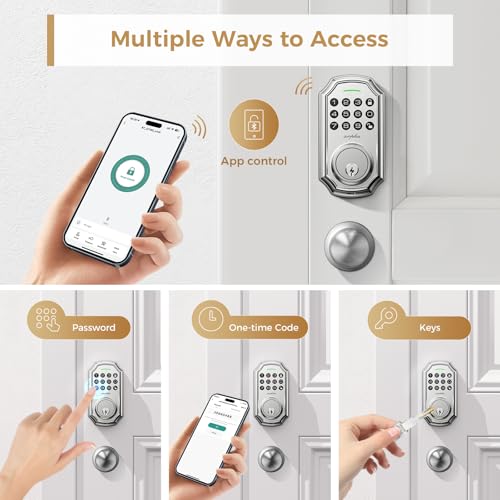 Keyless Entry Door Lock with 2 Knobs – Smart Deadbolt, App Control, 100-Code Keypad, One-Time Passcode, Auto Lock & Anti-Peep, Easy Installation for Front Door (Satin Nickel)