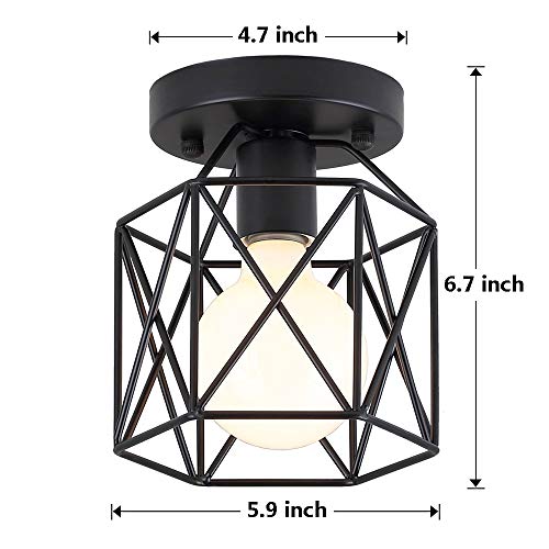 KOONTING Retro Vintage Industrial Flush Mount Ceiling Light, Mini Painting Metal Pendant Light Ceiling Light Fixture for Hallway Stairway Bedroom Kitchen, Black.