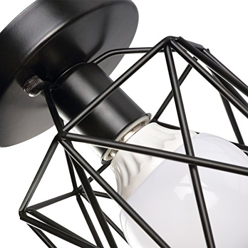 Design: Mini rustic semi-flush mount ceiling light, Black cage design, Retro vintage style, Color: black