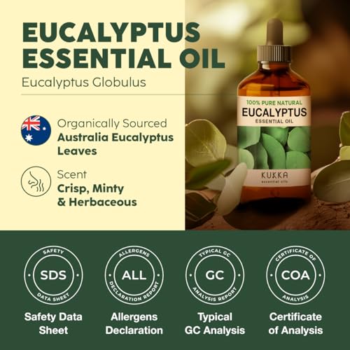 KUKKA essential oils 100% Pure & Natural Eucalyptus Essential Oil for Diffuser, Humidifier, Skin, Hair & Soap Making DIY(4 Fl Oz/118 ml)