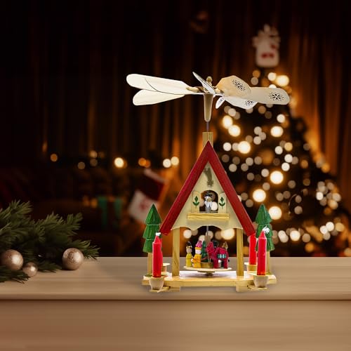 This Kurt Adler 12-Inch Wood Alpine House Carousel with Candles is a beautiful, festive way to add to your holiday décor. This wooden house has a small, detailed cast of characters on a moving carousel; when the 4 included red candles are lit, heat causes the windmill above the house to turn, causing the carousel to turn.