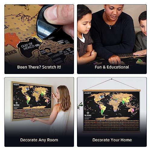 Includes Bonus Accessories: Your purchase comes with more than just a map! This interactive wall map includes a scratch tool, stickers for marking your travels, and is packaged in an eco-friendly triangular box featuring world flags. Frame not included.