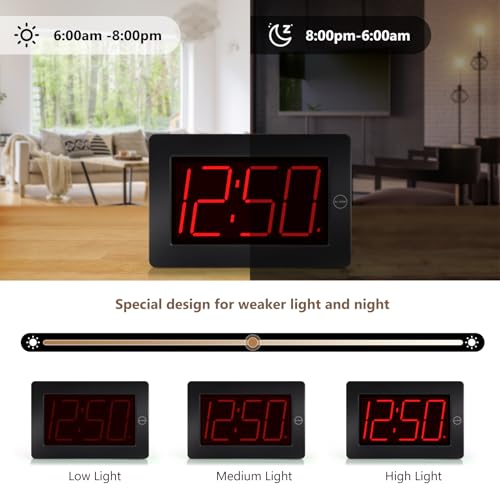 [Brightness Adjustbale] This digital clock has 3 levels of the brightness (high/middle/low) and the LED time display will dim automatically during 8pm to 6am.