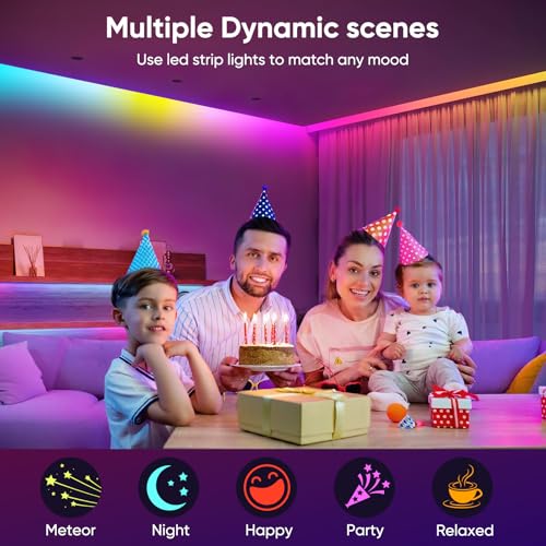 Vivid Colors and dynamic mode:With 16 million color choices and 200+ dynamic flashing rainbow color lighting effects. Add expressive light appearances to game rooms, living rooms and bedrooms, bringing an exciting lighting experience