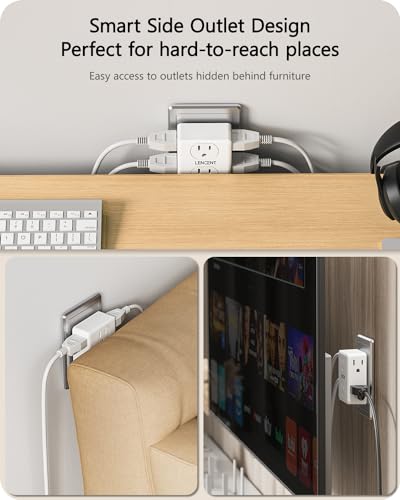 LENCENT 2 to 3 Prong Outlet Adapter, 2 Prong Power Strip, 6 Widely Spaced Outlets Extender, 3-Sided Wall Plug Splitter, 1875W Max, Compact Wall tap for Non-Grounded Outlets in Old House Hotel Dorm