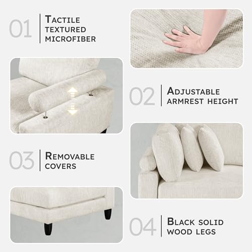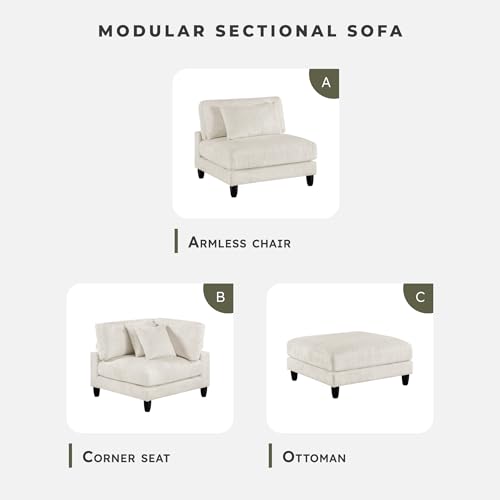 [Modular Unit] This corner chair module of the sectional sofa features a durable solid wood & plywood frame with plush beige microfiber upholstery. Designed to integrate seamlessly with other modular pieces, it brings flexibility & style to your space