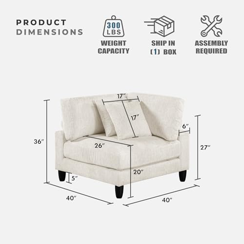 [Perfect Size & Sturdy] Corner chair measures 40″W x 40″D x 36″H; Seat Width: 26″; Seat Depth: 26″; Seat Height of 20″; Arm Height: 27″; Arm Width: 6″; Leg Height: 5″; Supports up to 300 lbs