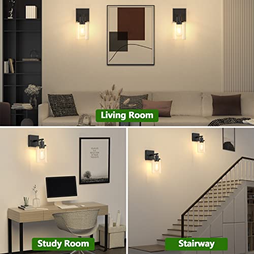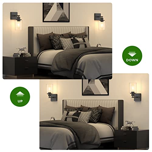 【Morden Design Wall Sconces】Not battery operated, Hardwire design! Our black vanity wall light fixture is UL approval, high quality matte black finish, builted with sturdy metal lamp base with transparent glass shades, showing a refined and modern style. The sconces wall lighting not only can be installed downwards but also upwards, face up to cast more light, and face down to make the light on the bathroom cabinet more pleasing.