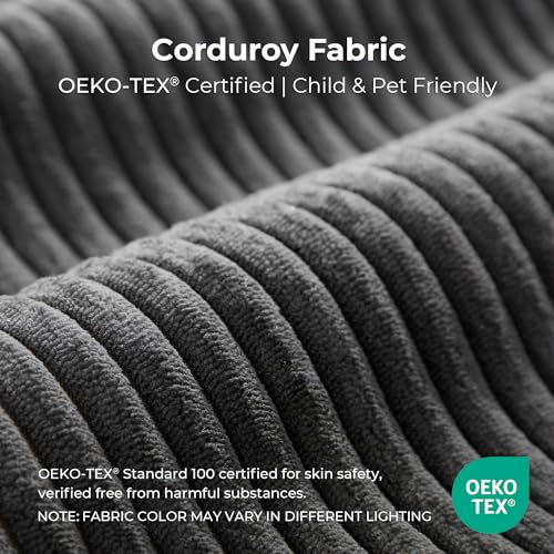 【Durable, Certified Corduroy Fabric】 Upholstered in OEKO-TEX certified corduroy, a fabric tested for safety and durability. Soft yet hard-wearing, it resists stains, pilling, and fading—ideal for homes with kids and pets
