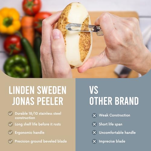 Linden Sweden Original Jonas Vegetable Peeler – Rust Resistant Silver Carrot and Potato Peeler with Ergonomic Handle for Safety and Control – Dishwasher Safe and Compact – Made In Sweden – 6.5in
