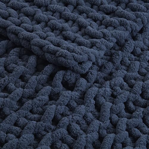 Madison Park Chenille Chunky Knit Handmade Throw Blanket, Luxuriously Soft Gift Blankets, Cottage Style Room Décor, Lightweight & Breathable All Seasons Throw Blanket for Couch, 50″W x 60″L Navy Blue