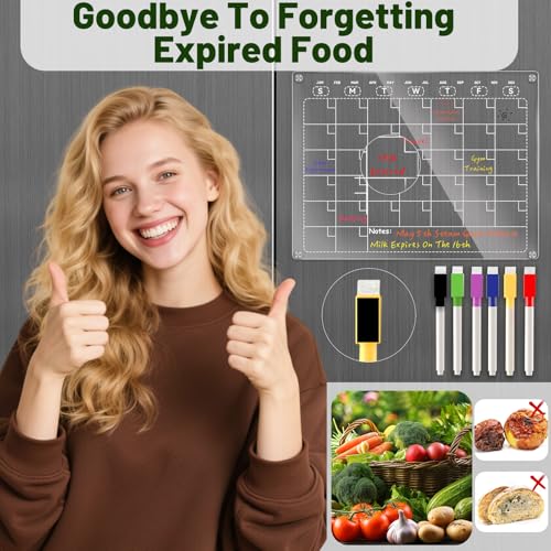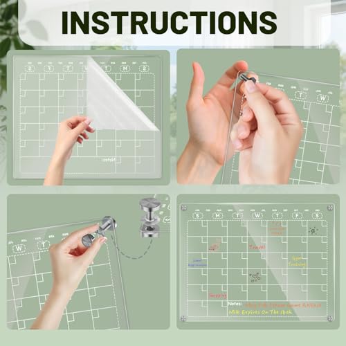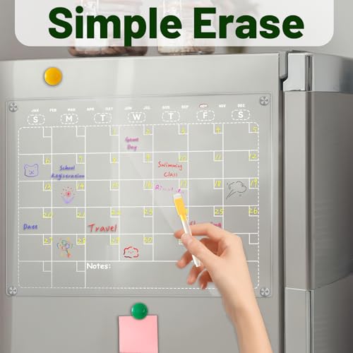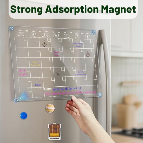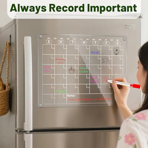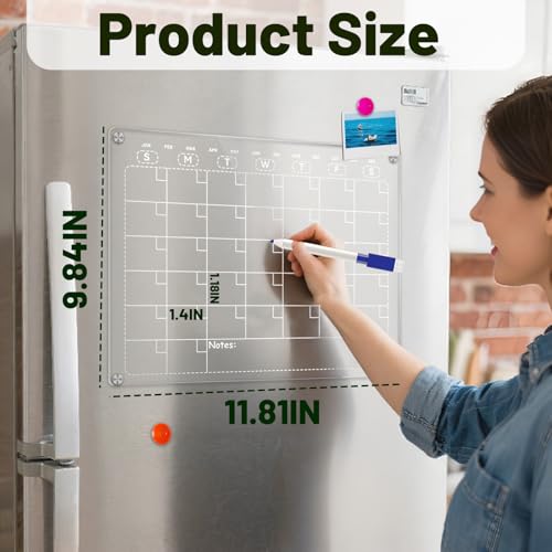Magnetic Calendar for Refrigerator, Acrylic Fridge Calendar for Easy Organizing, Clear Monthly Planner Whiteboard for Refrigerator 11.8″x9.8″