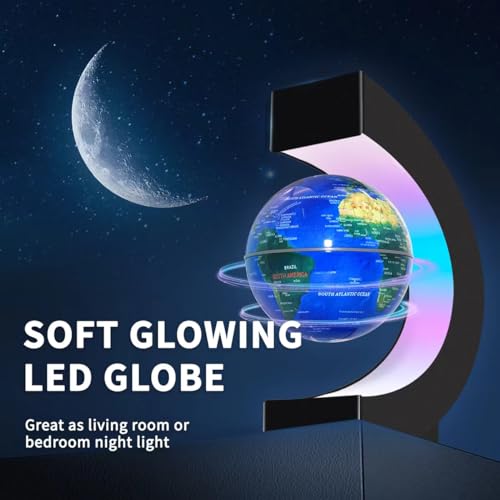 Magnetic Levitating Floating Globe with LED Lights, Cool Gadgets C Frame Globe Lamp for Men Father Husbands Boys Girls and Kids, Cool Tech Gift for Office Home Bookshelf Desk Decor