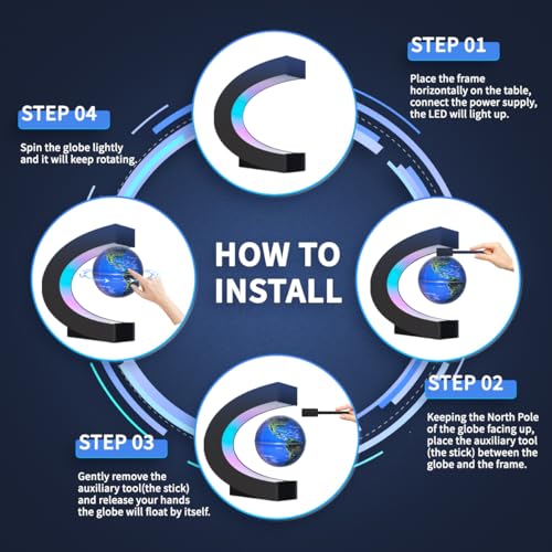 🌎EASY INSTALLATION: First secure the sphere to the top of the base, then place the included installation tool between the base and the globe. Remove the tool and the globe will float on its own. Takes you on a journey through time and space in just a few seconds.
