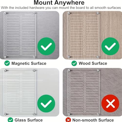 Establishment made easy: thanks to the strong magnetic bond, our magnetic dry extinguishing board made of acrylic sticks securely on metal surfaces and most refrigerators, so no drilling is required.