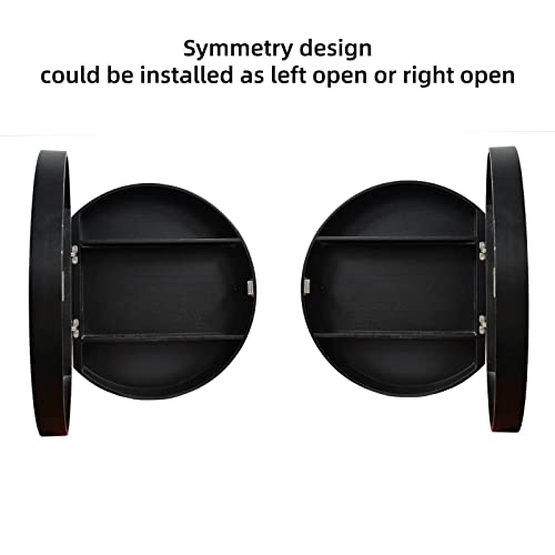 Medicine Cabinet Bathroom Space Saver Storage Round Cabinets with Mirror Surface Wall Mounted Solid Wood Circular Frame 3 Level (Color: Black, Size:20 Inch x 20 Inch