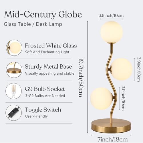 【Table Lamp Size】7*7*19.7inch(18*18*50cm).Glass lampshade Dia:3.9in/10cm.Electric wire:55in/140cm.3*G9 Bulb(Not include)
