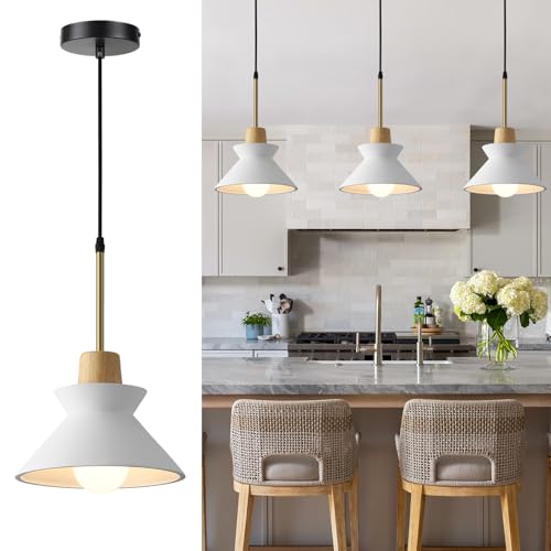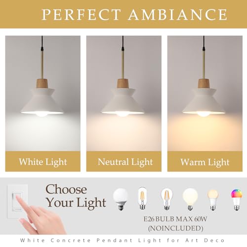MODERN DESIGN: White concrete lampshade with natural wood accent creates a striking Nordic-inspired aesthetic perfect for contemporary spaces