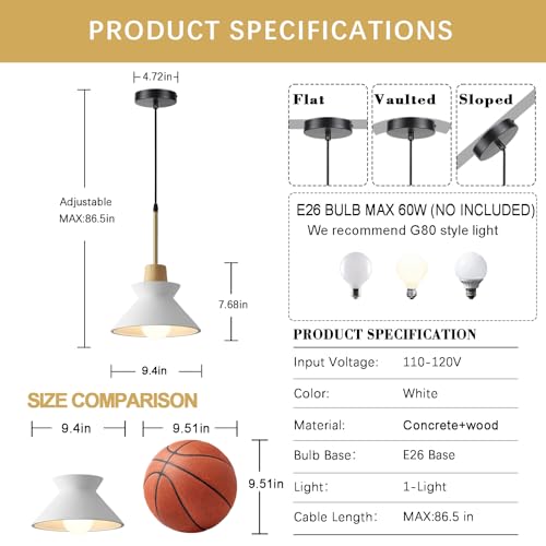 Modern Pendant Light 9.4in Diameter White Concrete Lampshade