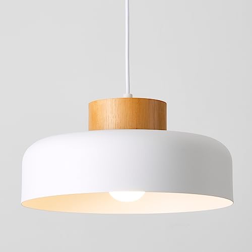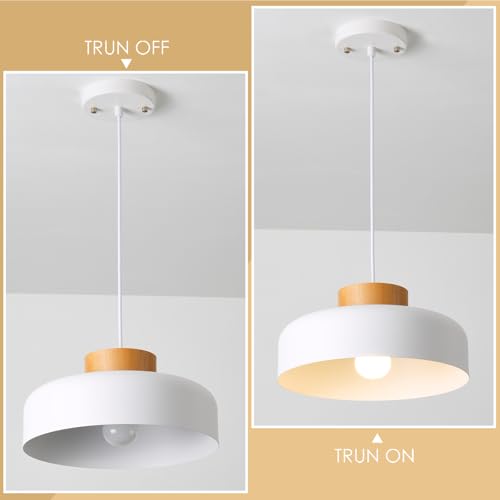 MODERN DESIGN: The white pendant light featured natural wood cap and matte white shade, is the perfect addition to any modern home decor, Ideal for illuminating kitchen islands, dining room tables, kitchen sinks, or breakfast nooks.