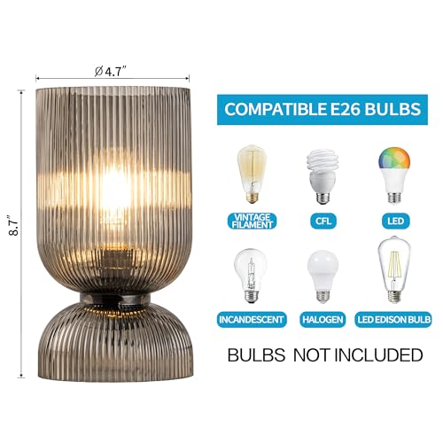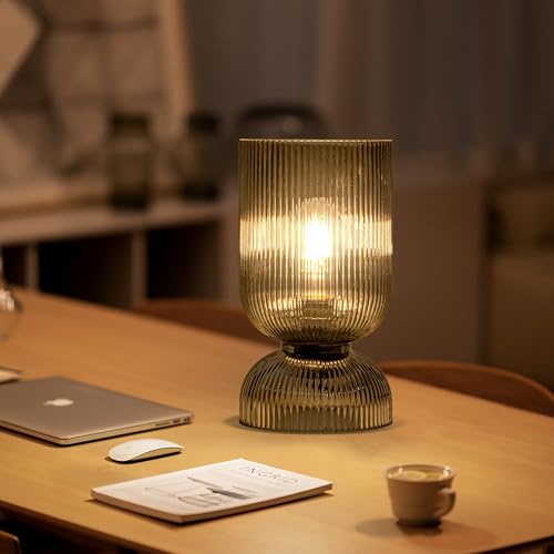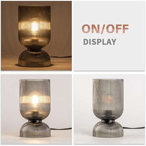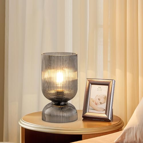【Elegant Ribbed Glass Design】– Featuring a sleek, vertically ribbed glass shade with a stylish smoky-gray finish, this lamp adds a sophisticated touch to any space. Its modern yet timeless design blends seamlessly with various home décors, from minimalist to vintage.
