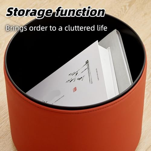 Mushroom Shaped Storage Ottoman, Round PU Leather Vanity Stool with Hidden Compartment, Footrest Pouf Chair for Bedroom, Living Room, Entryway, Modern Shoe Changing Seat(Red)