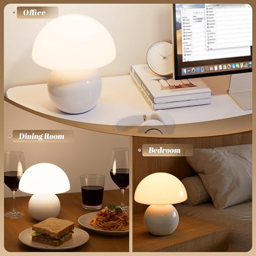 【Premium Build with Smart Accessories】 Includes a magnetic cable clip, soft cleaning cloth, and instruction card for easy setup. Our glass mushroom lamp combines thoughtful features and smart details, making it one of the best cordless mushroom table lamps in the market.