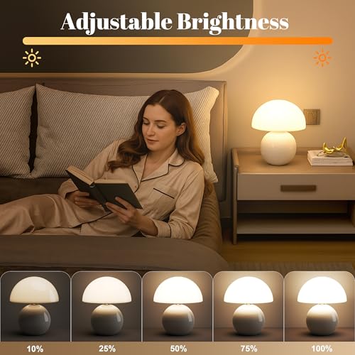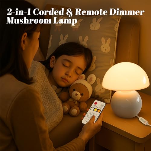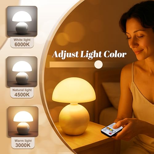 【Dimmable Light with 3 Color Modes】 Dimmable mushroom lamp offers adjustable ambiance with 3 light settings warm, neutral, and cool white all controlled via dimmer & remote. This mushroom bedside lamp is perfect for reading, relaxing, or sleeping.