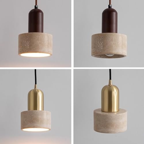 Material: Cylinder shape pendant light crafted from wood and travertine, stone, the shade with some natural hole, this vintage pendant lamp is sure to make a statement with its unique texture and design.