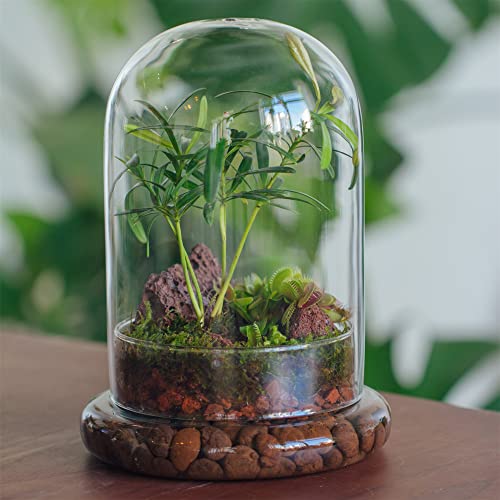 NCYP Glass Cloche Dome with Air Hole and Base, 5.9 x 5.9 x 8.2 Inches, Clear Terrarium Planter for Carnivorous Plants, Small Cactus, Succulents, Venus Flytrap, Tabletop Decoration (No Plants)