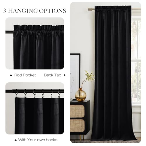 NICETOWN Halloween Black Velvet Blackout Curtains 96 inch Long for Bedroom and Living Room, Thermal Curtains Solid Heavy Rod Pocket Drapes/Window Treatments for Hall, Theater (2 Pieces, 52 W)