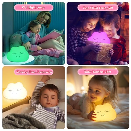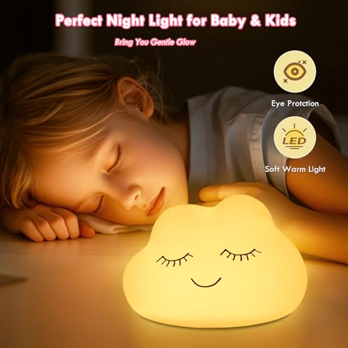 Night Light for Kids, 7 Colors Soft Silicone Kids Night Light with 3 Level Dimmable, Rechargeable Anti-glare Nursery Night Light with Warm White & Multicolor, Squishy Cute Cloud Bedside Touch Lamp