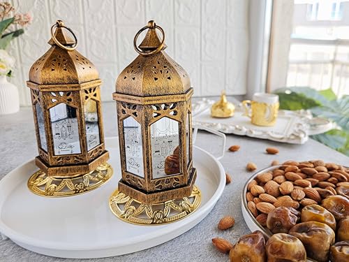 🎁 RAMADAN LANTERN SET OF 2: This ramadan decorations for home 2026 includes 2 (8×3.2″) Ramadan Lanterns with Islamic motifs and Ramadan Kareem printed on Ramadan lantern glass sides. ramadan decor فانوس رمضان