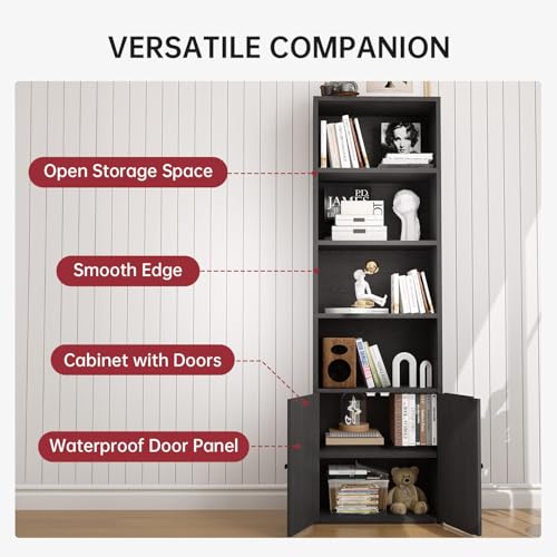 Durable and Stylish Design – Crafted from high-quality, waterproof, and scratch-resistant board with a wooden appearance and fashionable black finish, this 6-tier bookshelf is both durable and versatile, seamlessly matching most decorative styles