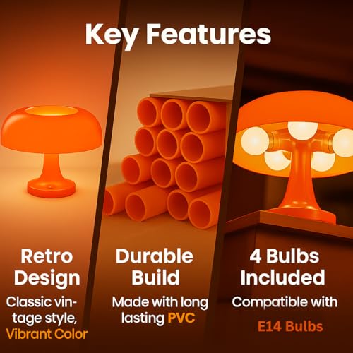 Mid Century Modern Meets Timeless Style – Inspired by Danish and Nordic design, this orange mushroom lamp is a classic piece of mid-century modern lighting. It’s the ultimate retro lamp for those who want a touch of vintage charm.