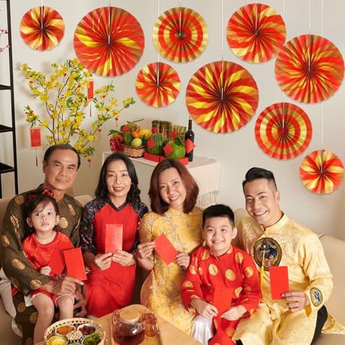 Quality Material: our red Chinese spring festival ceiling decorations are made of thickened paper, not easy to tear and fade, add a touch of color to your Chinese New Year celebrations with these dazzling paper fans in traditional red and lucky motifs