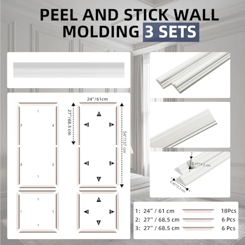 What’s Included – 3 Sets Peel and Stick 3D Wall Panels (30 Pre-Cut Pieces) – Create Custom Accent Walls with 10pc/Set Interchangeable Wainscoting Moulding Designs for Living Room/Bedroom Wall Decor