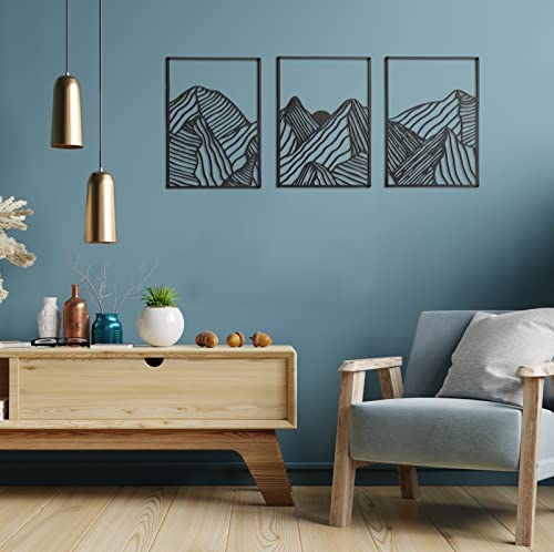 Peryiter Metal Wall Art 3 Piece Mountain Wall Art for Living Room Abstract Minimalist Mountain Line Pictures Gifts Decor for Summer Home Bathroom Office(Black)