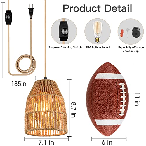 【360°Lighting with Cozy Atmosphere】Cinkeda plug in chandelier with a hand-woven hemp rope Lampshade of 8.7″x7.1″, which is shaped like a bowl. When light up at night, the hanging pendant lights emits smooth light with 360°Lighting, bring you the cozy and quiet atmosphere.