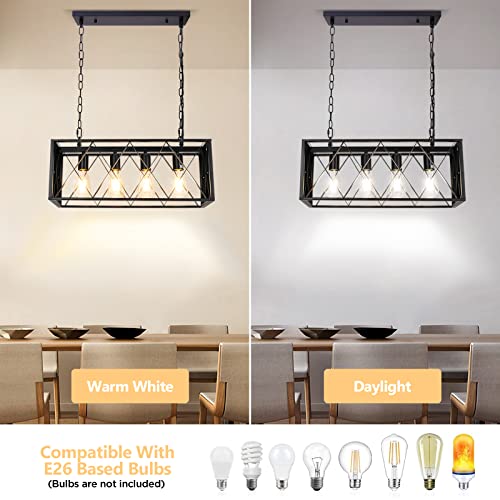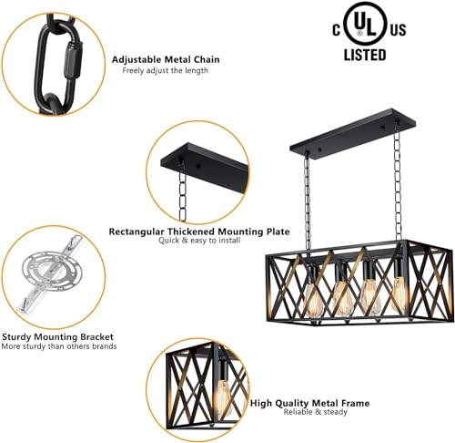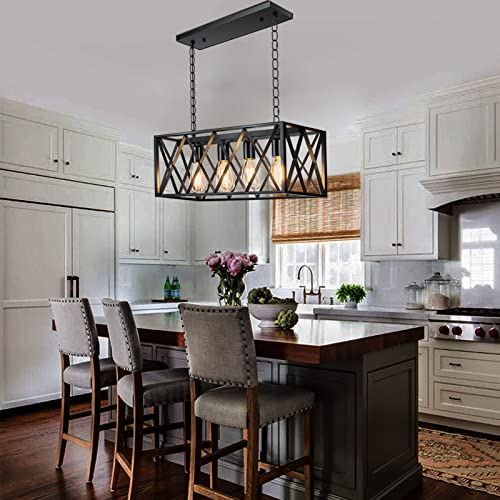 Pynsseu Industrial Kitchen Island Pendant Lighting, Rectangular Vintage Rustic 4-Light Hanging Pendant Light Fixtures for Kitchen Farmhouse, Bar, Dinning Room