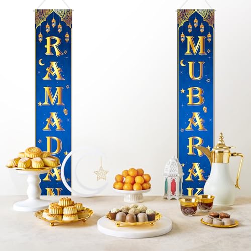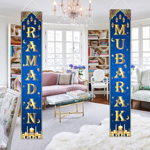 Mubarak Eid Banner: Easy but festive mubarak decorations. Pre-assembled to decorate front door, porch, fireplace, garage, patio, home, office, indoor and outdoor easily.