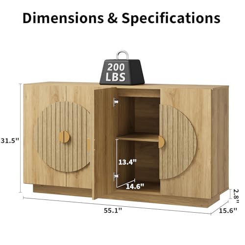 Rresyet 55″ Fluted Buffet Cabinet, Symmetrical Arched Accent Sideboard with Storage, Modern Large Console Table for Dining Room, Kitchen & Living Room