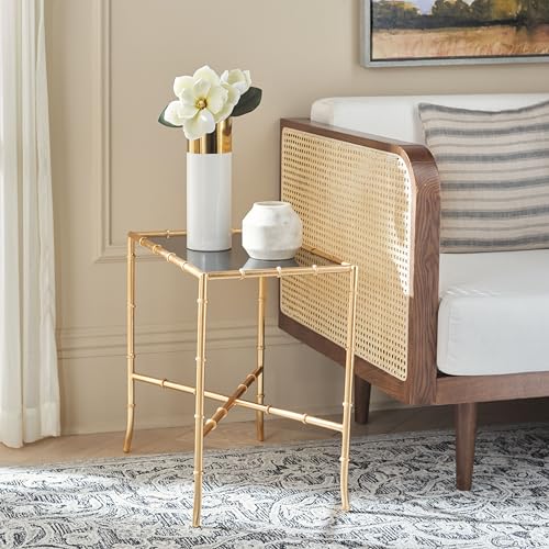 SAFAVIEH Home Collection Chandler Accent Table, Gold Cross Base with Black Glass Top, Fully Assembled (FOX2513A)